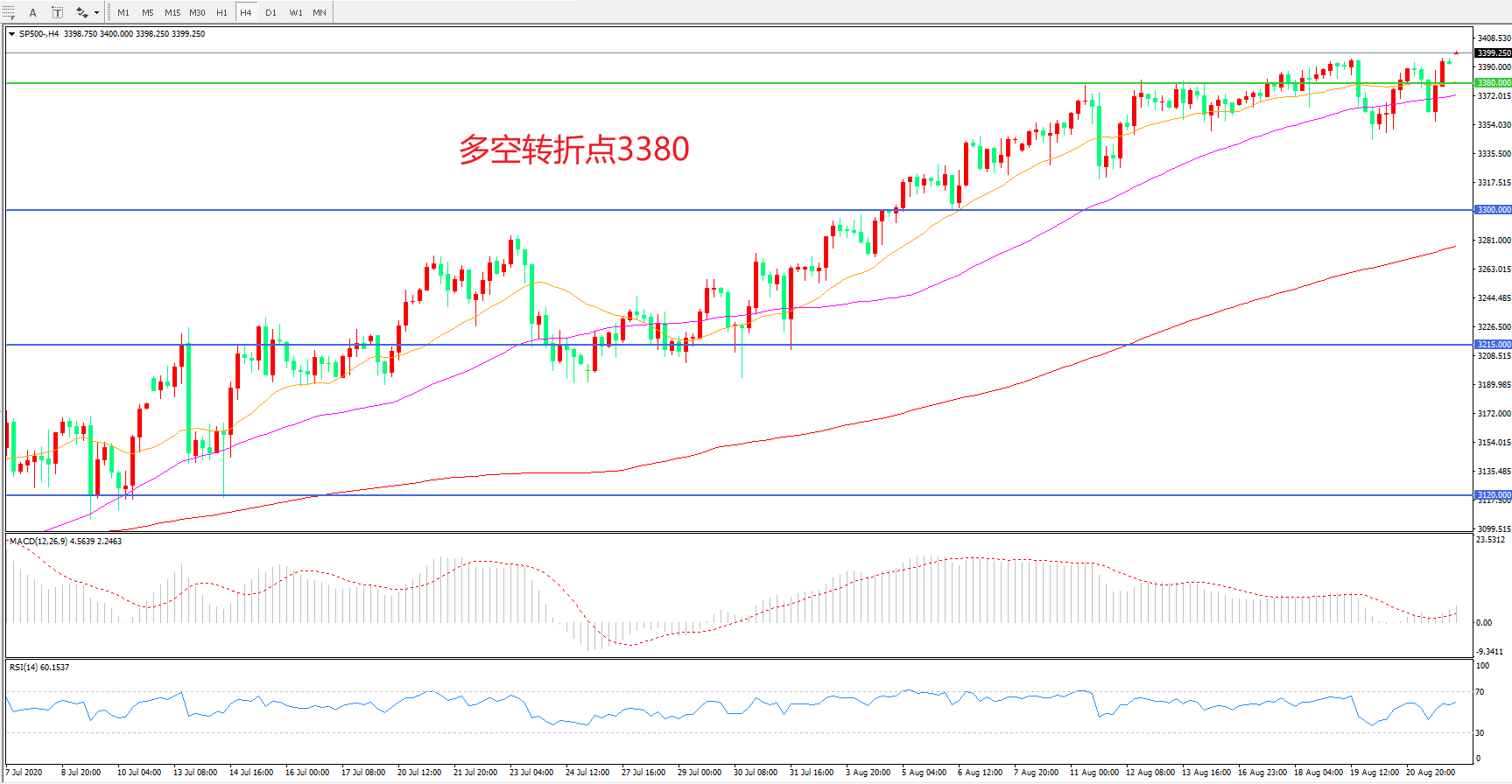 交易策略:在3380.00之上看涨,目标3450.00         3530.00