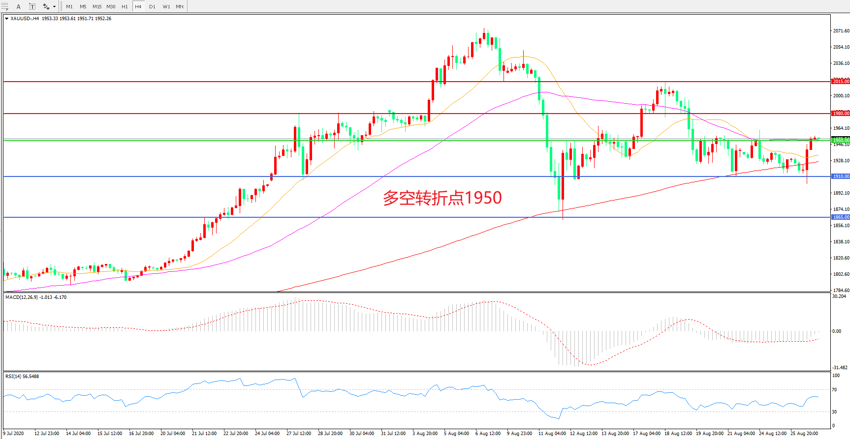多空转折点:1950.00