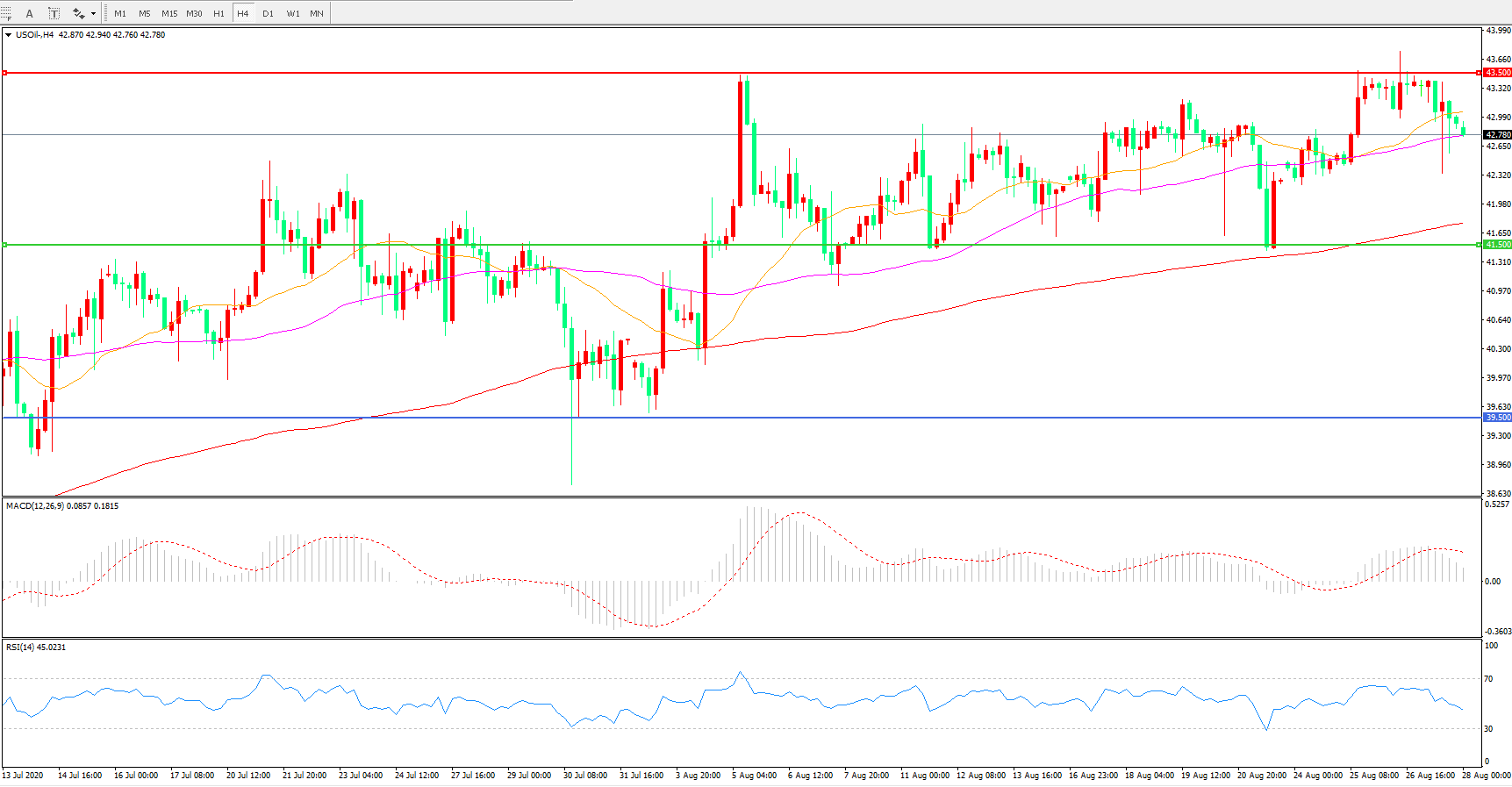 交易策略:在41.50之上看涨,目标43.50 46.00