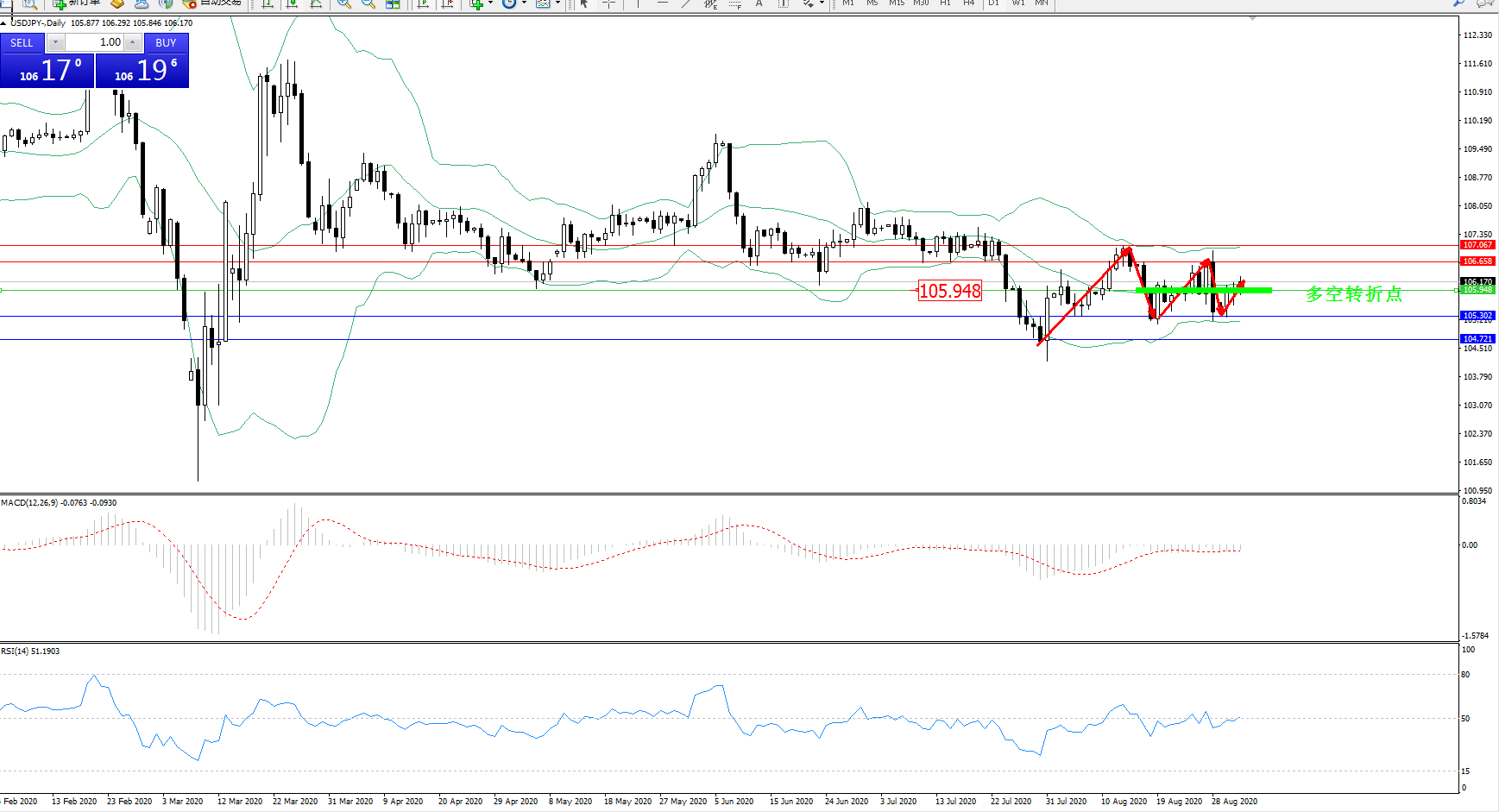 多空转折点:105.948