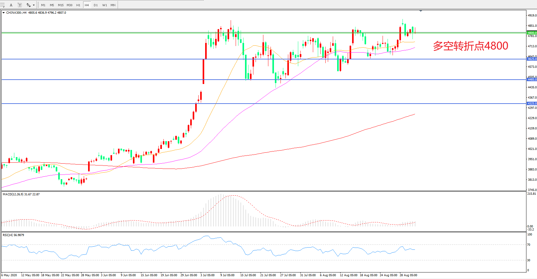 多空转折点:4800.00