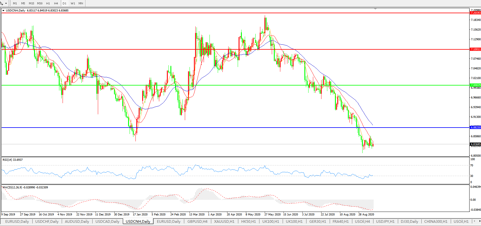 美元兑人民币USDCNH    日线图: