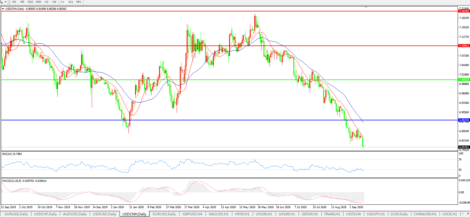 美元兑人民币USDCNH    日线图: