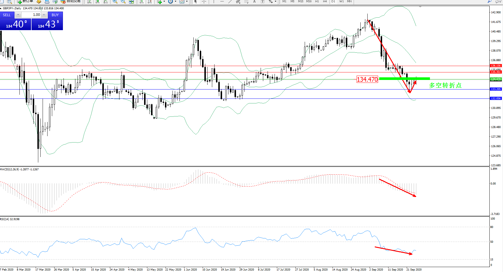 交易策略:134.470下方看跌,目标133.205、132.056
