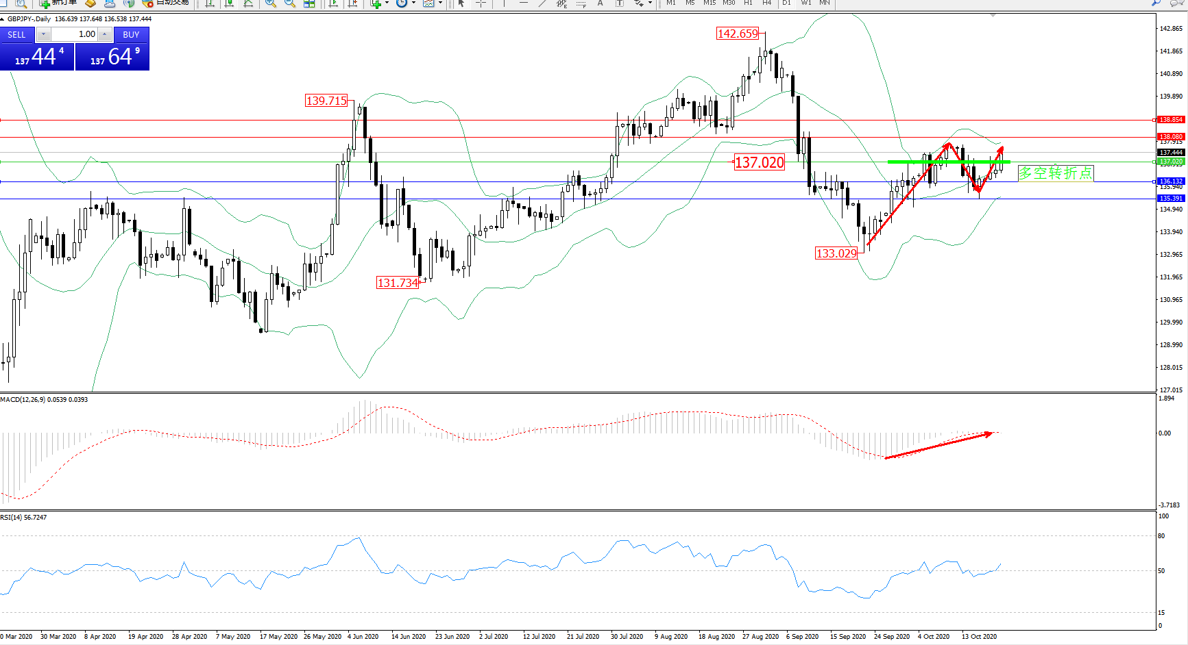 多空转折点:137.020