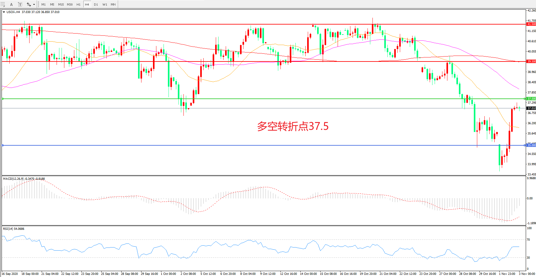 多空转折点:37.50