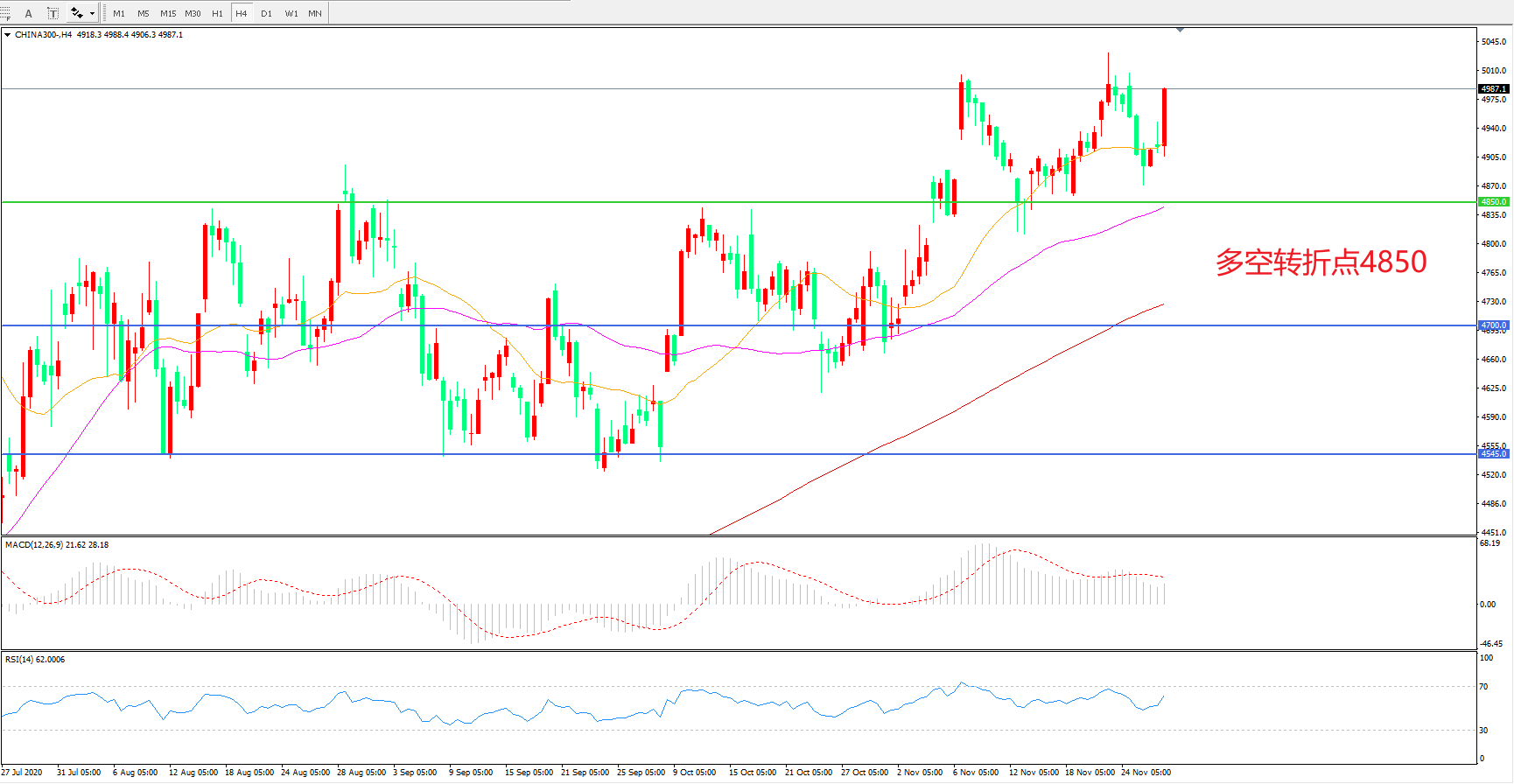 多空转折点:4850.00