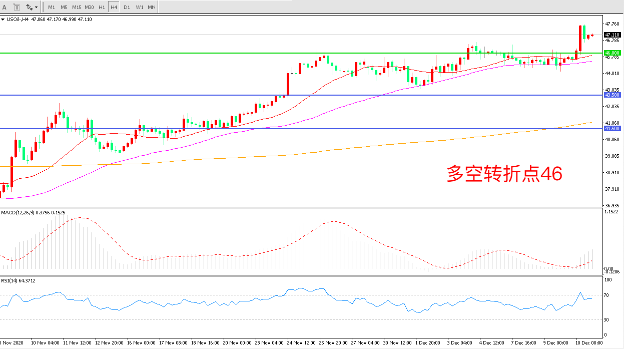 12月10日),美国财长努钦和众议院议长佩洛西均表示,在达成新冠救助协议方面已取得进展市场风险情绪回归美国WTI原油大涨近3%,收报47.03美元/目前市场持续受到新冠疫苗即将大规模推出的利好消息提振,以及昨日伊拉克北部两处油井遇袭事件的影响多头情绪较为乐观