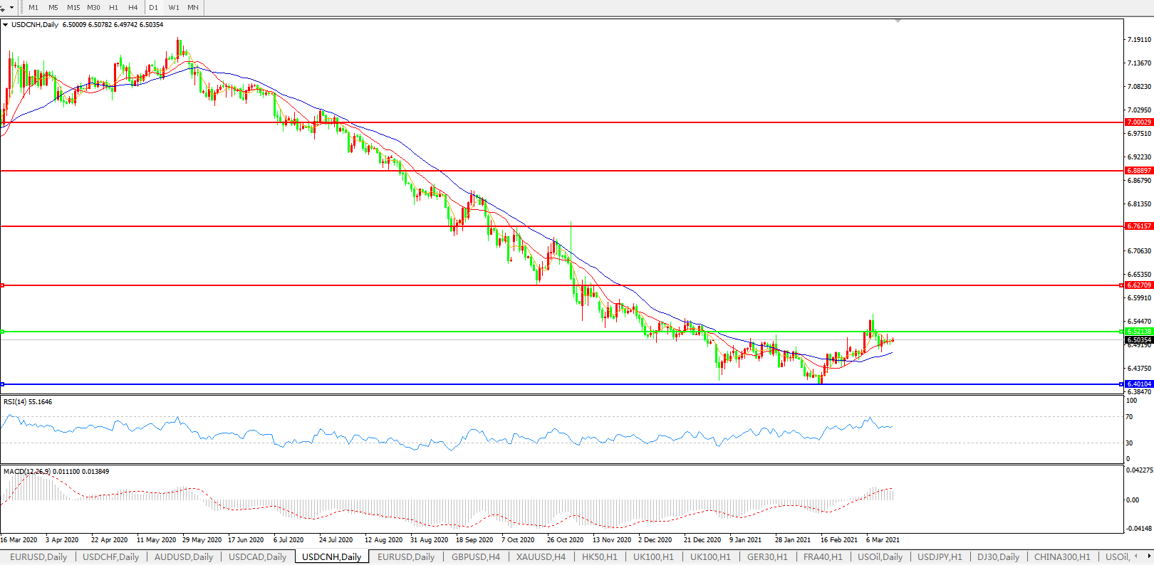 备选策略: 在6.5200之上,看涨,目标价位为6.6300,然后为6.7615。