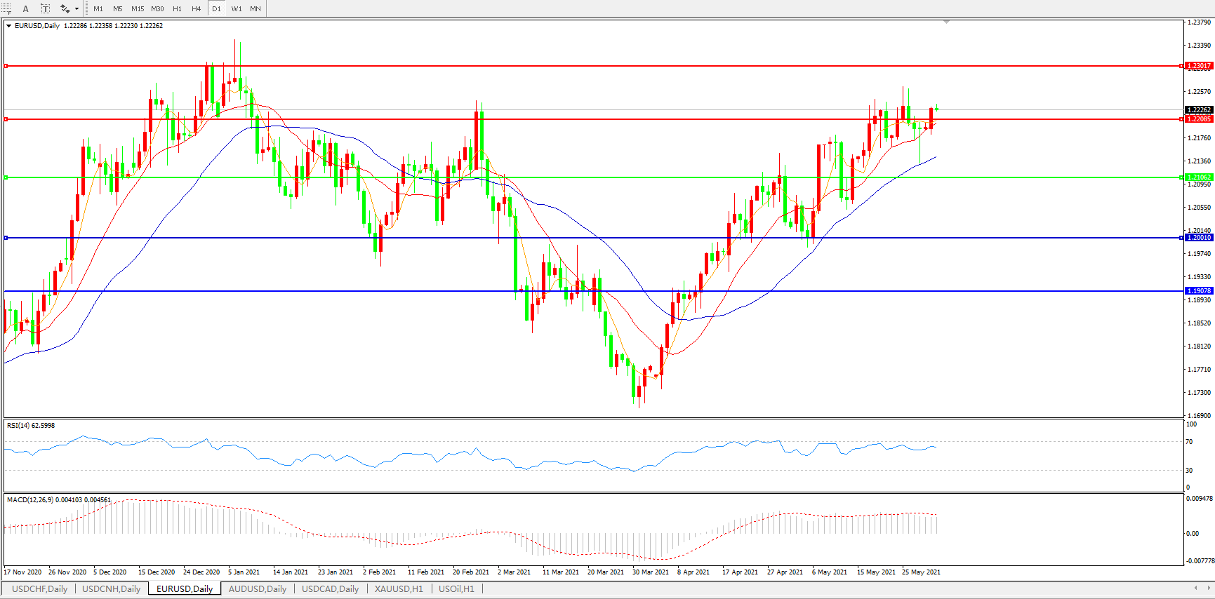 欧元兑美元EURUSD 日线图: