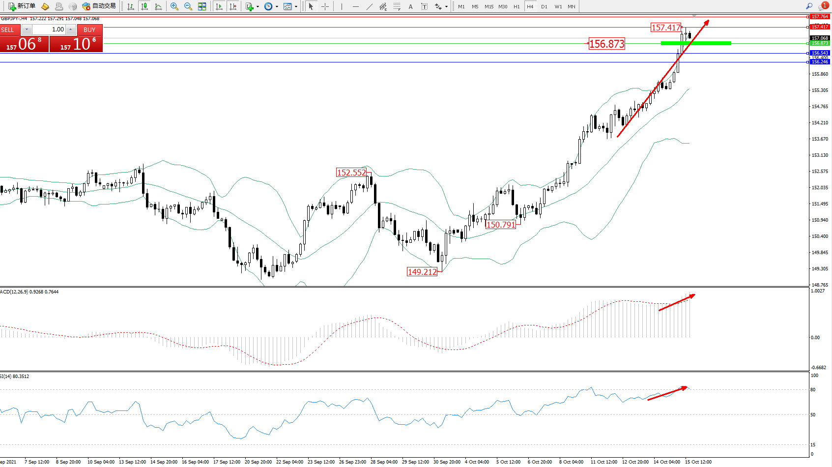压制位:157.417、157.764