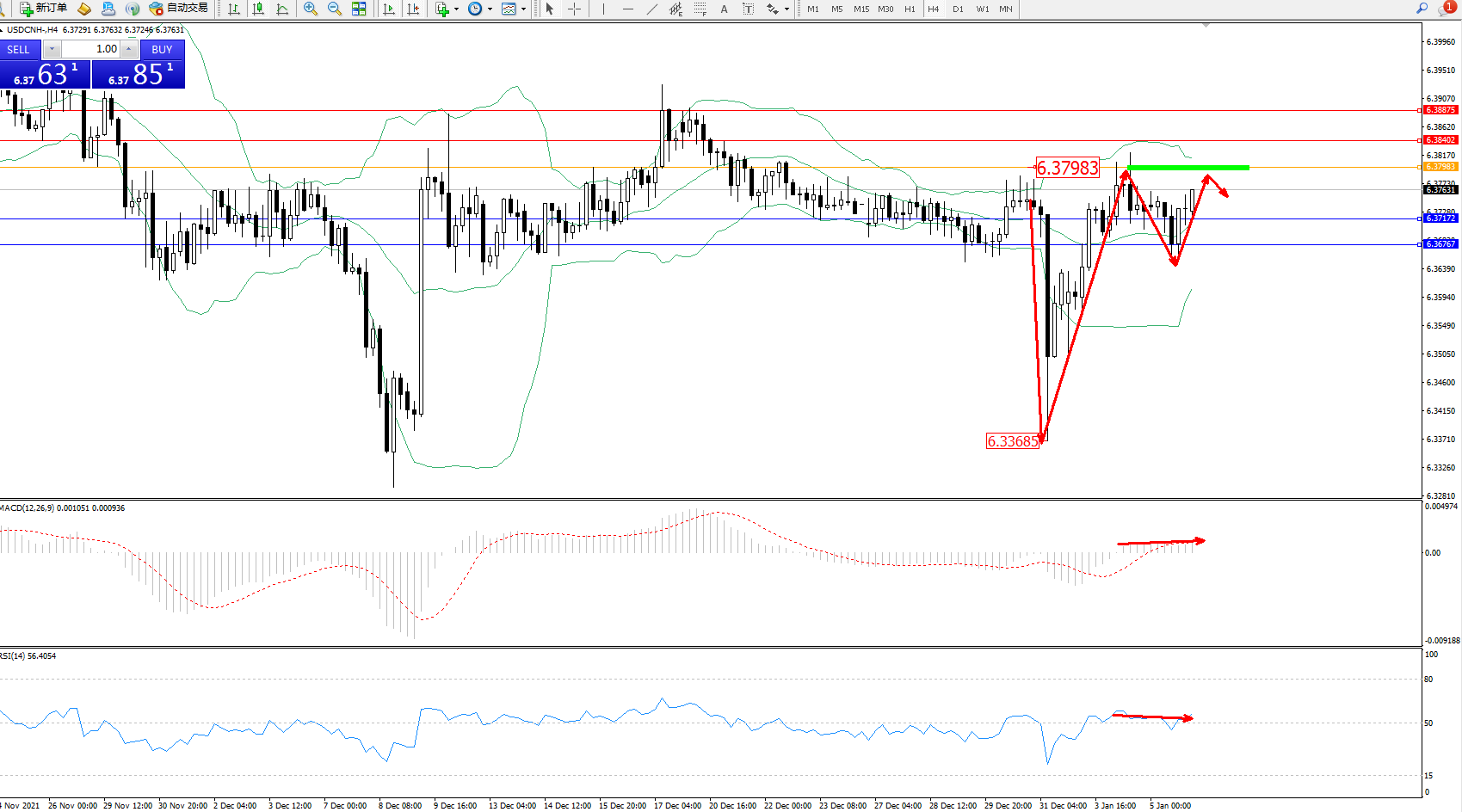 交易策略:6.37983上方看涨,目标6.38402、6.38875