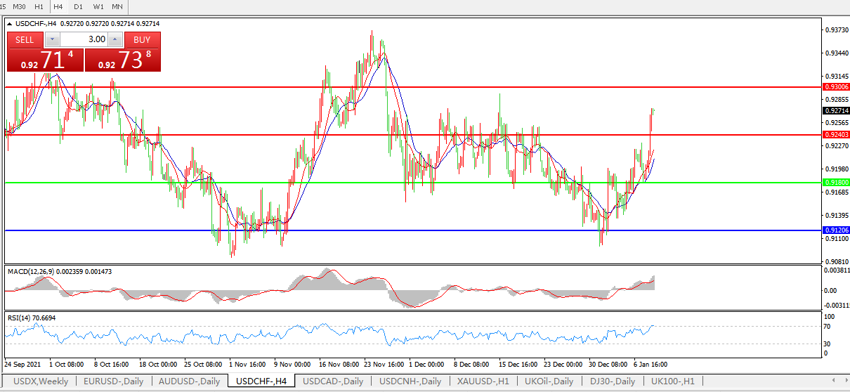 美元兑瑞郎USDCHF 4小时图:
