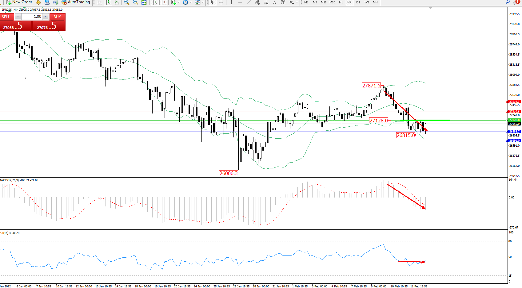 交易策略:27128下方看跌,目标26886、26691