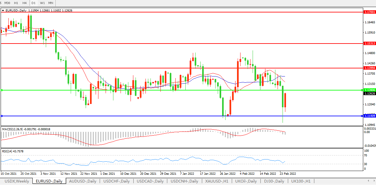 交易策略:1.1280下方看跌,目标1.1140、1.0600