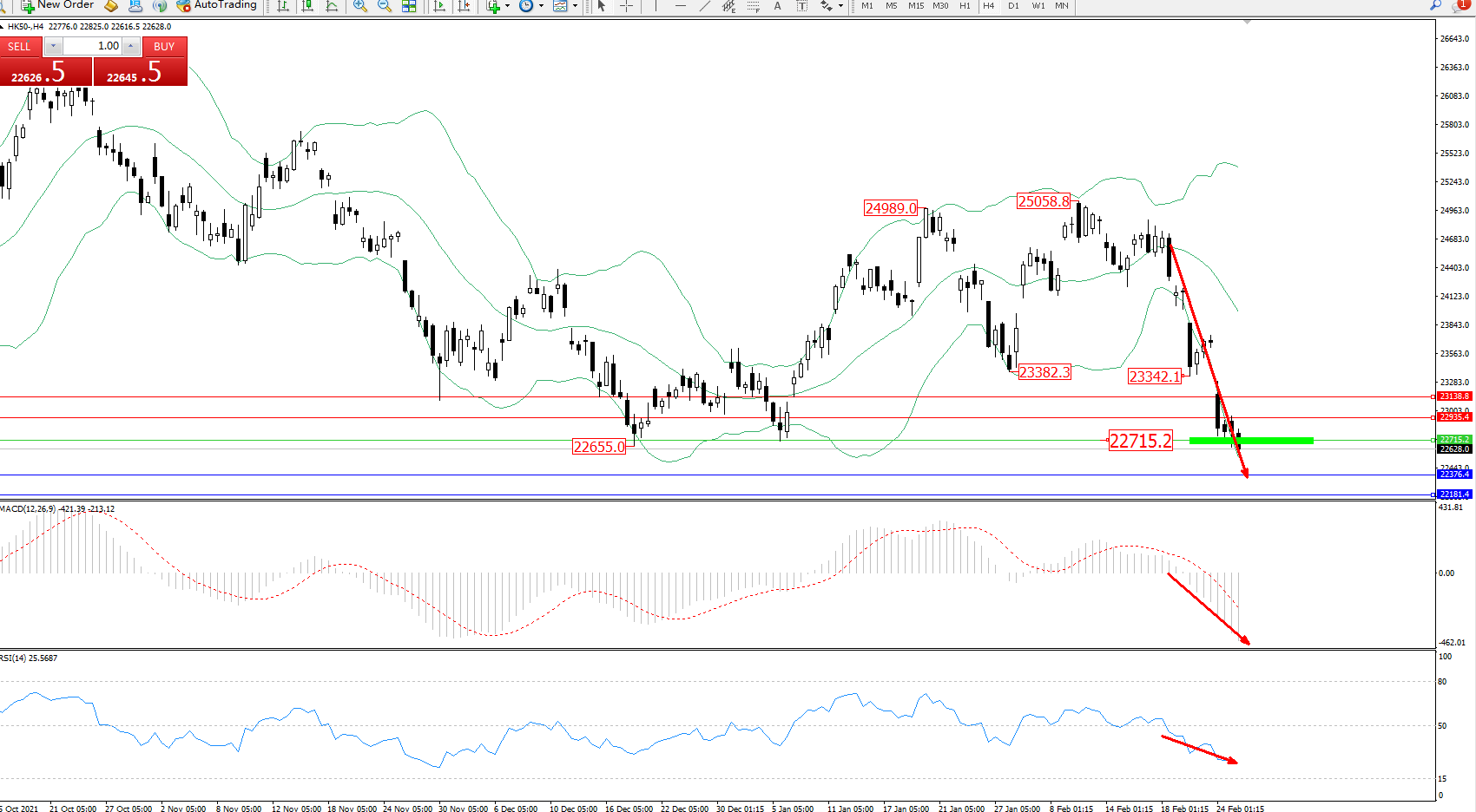 恒指HK50 ——4小时K线图显示: