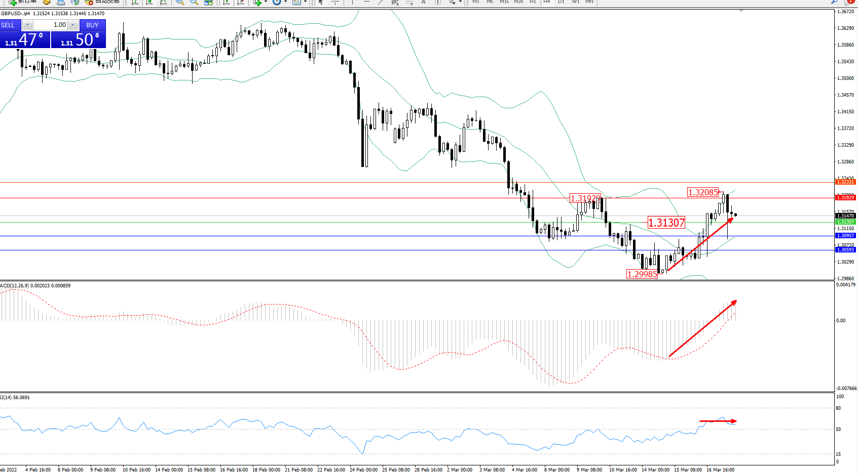 交易策略:1.31307上方看涨,目标1.31929、1.32331