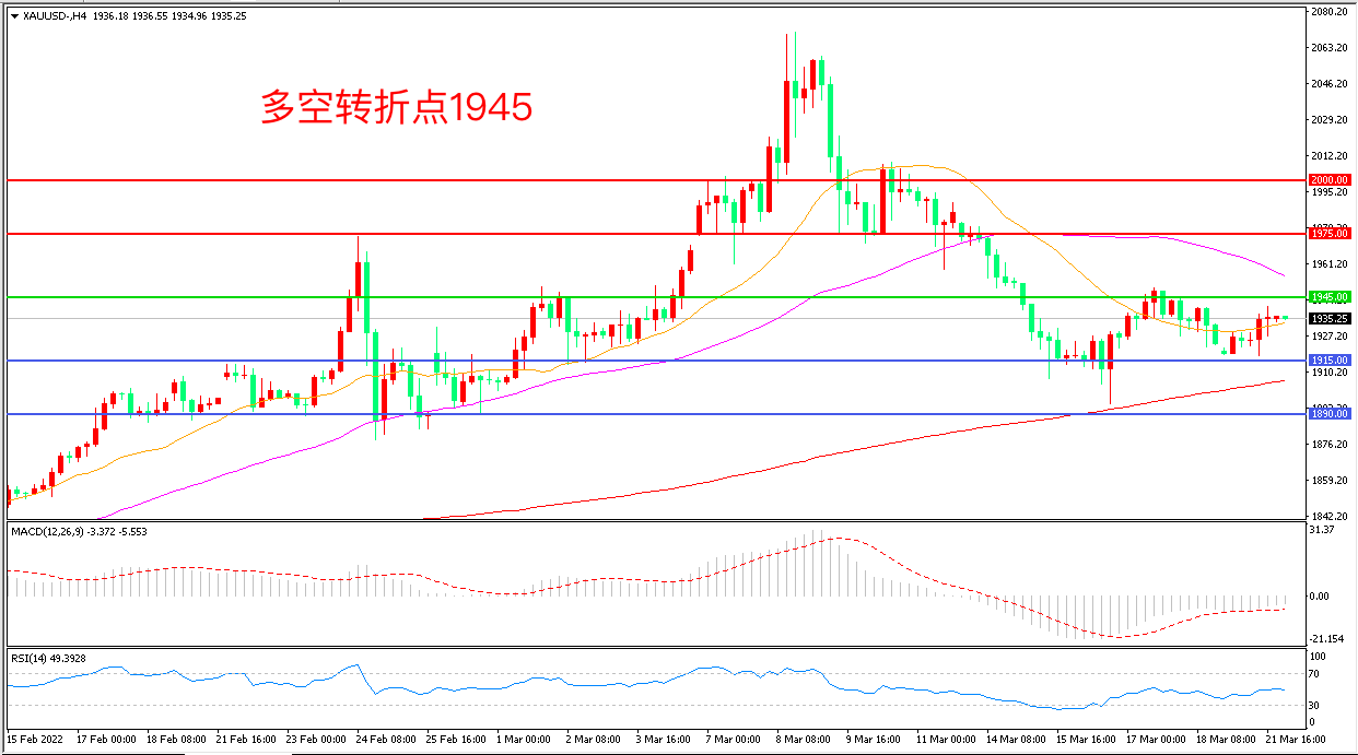 备选策略:在1945.00之下看跌,目标1915.00        1890.00