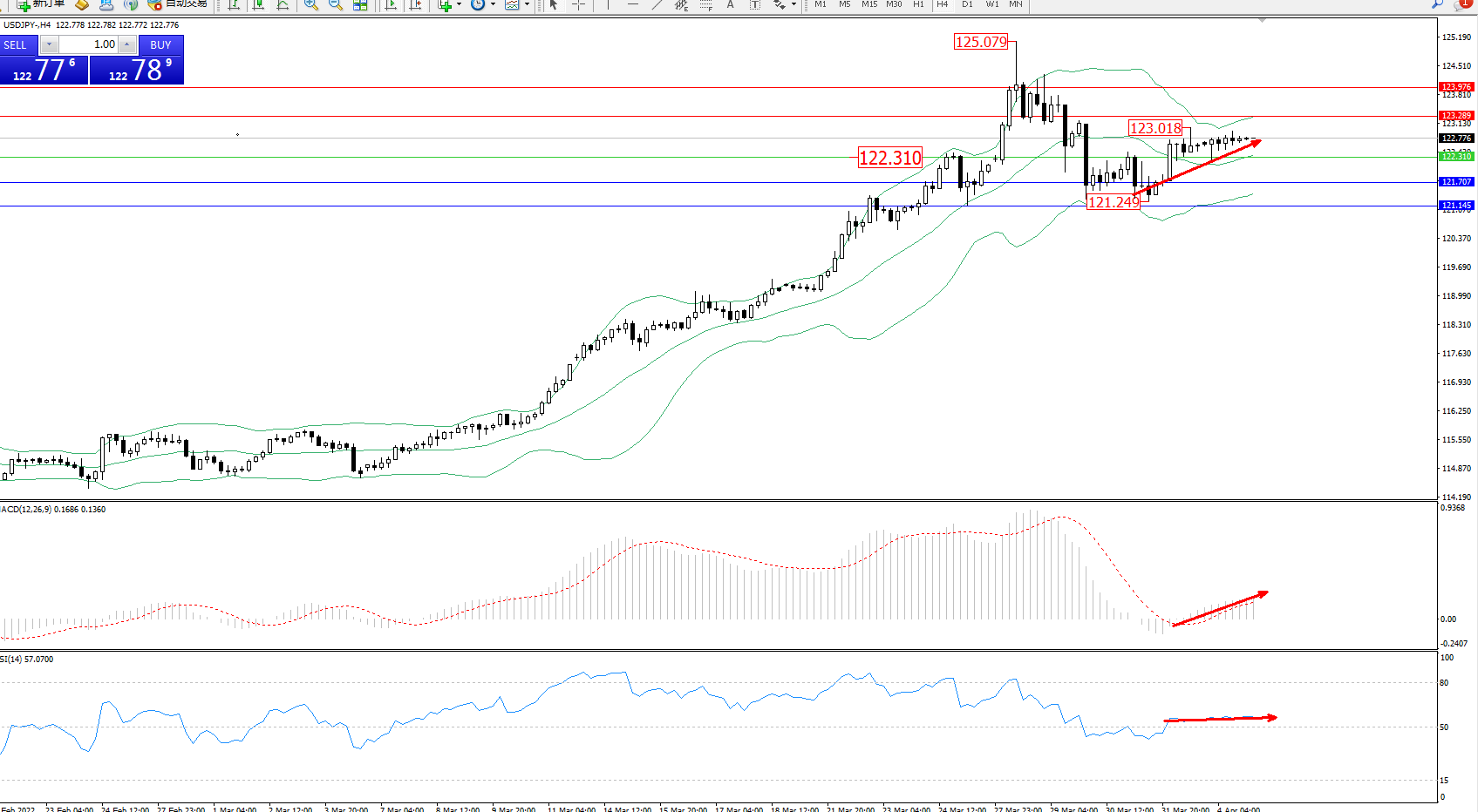 交易策略:122.310上方看涨,目标122.289、123.976