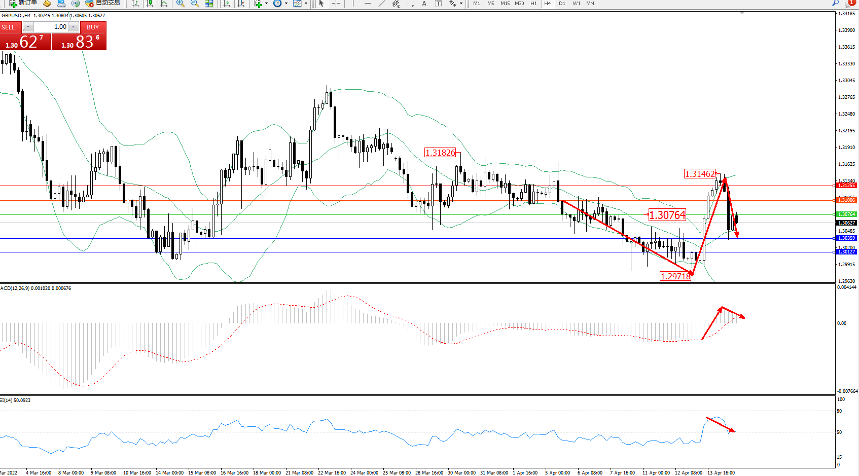 备选策略:1.30764上方看涨,目标1.310061.31255