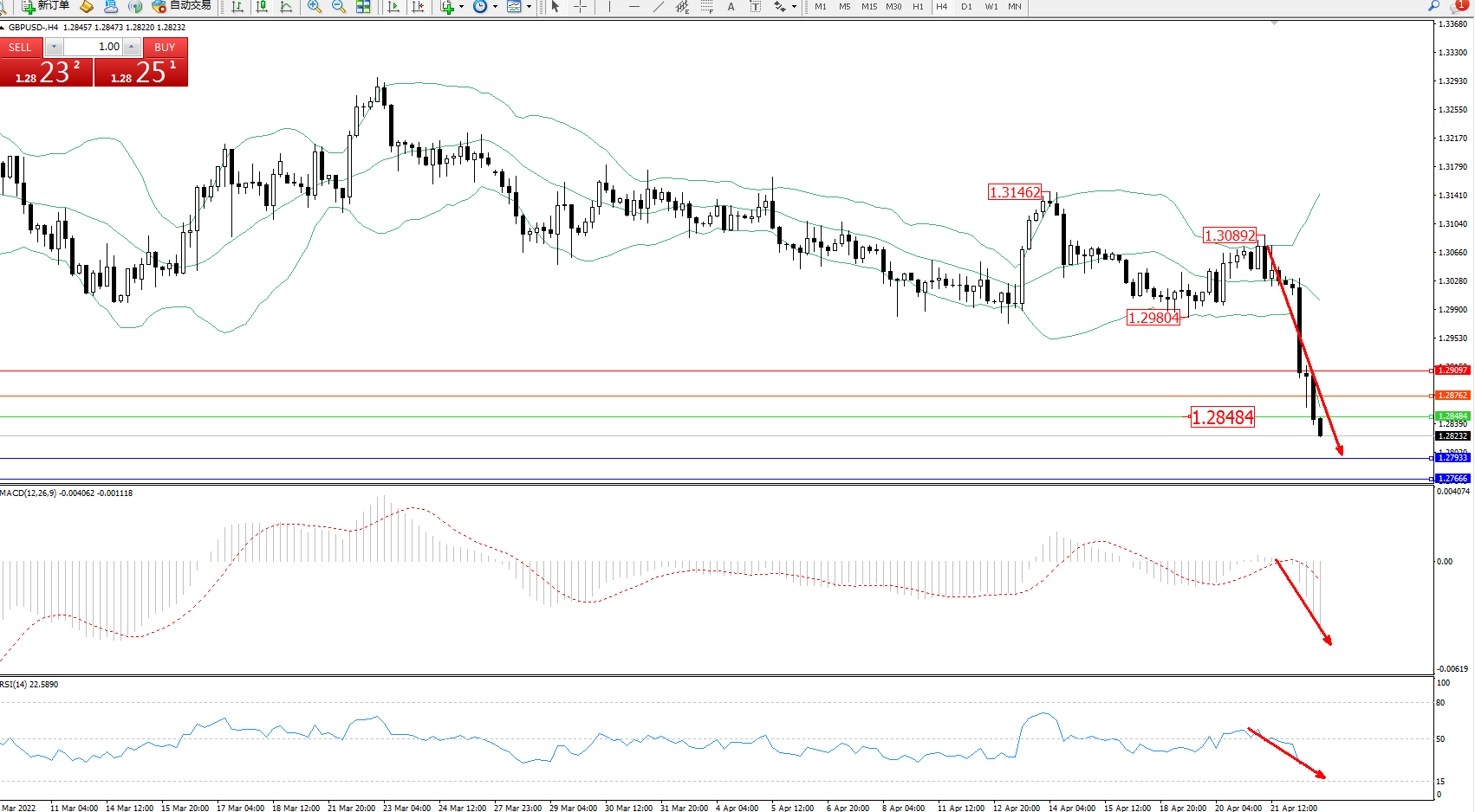 交易策略:1.28484下方看跌,目标1.27933、1.27666