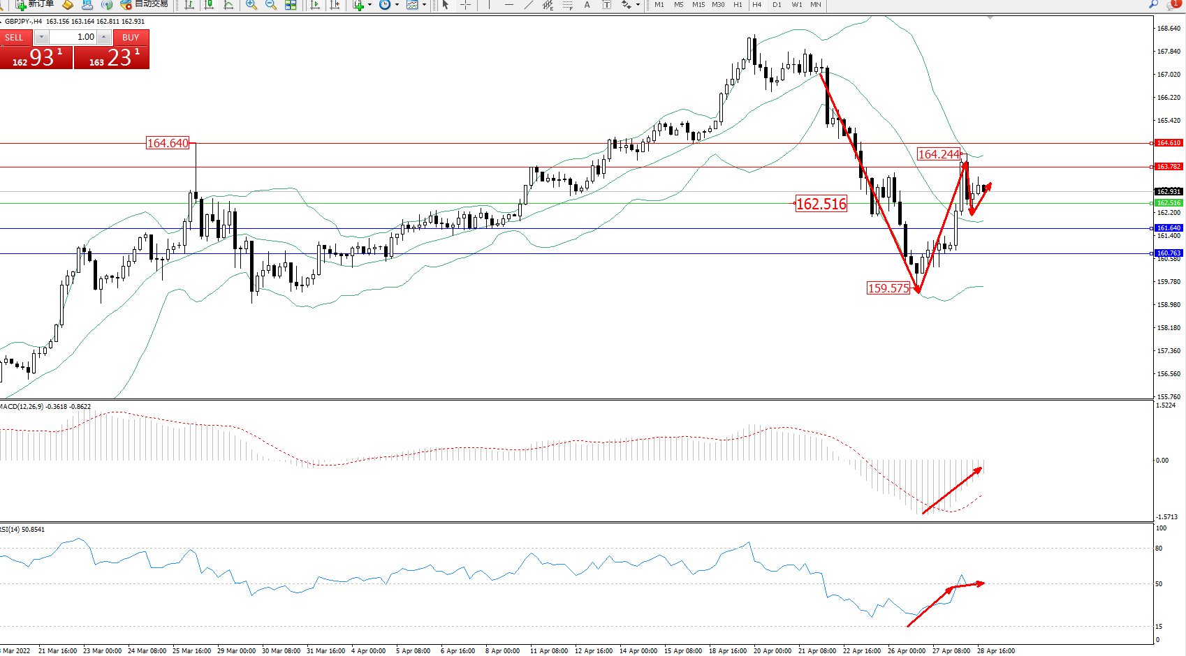 交易策略:162.516上方看涨,目标163.782、164.610