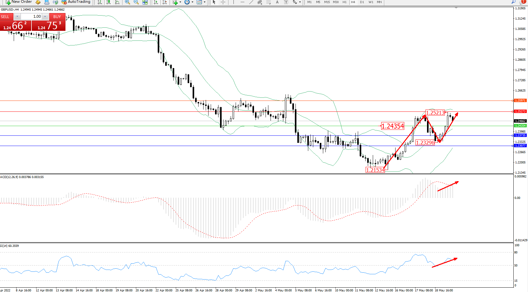 英镑美元GBPUSD ——4小时K线图显示: