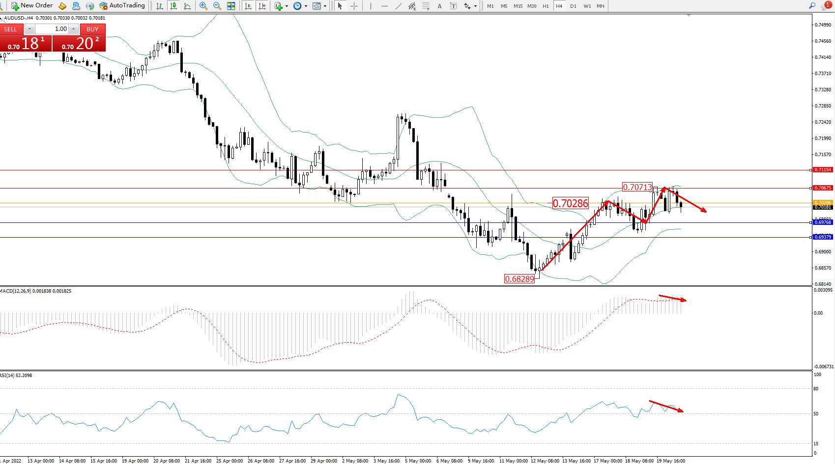 交易策略:0.70286下方看跌,目标0.68768、0.69379