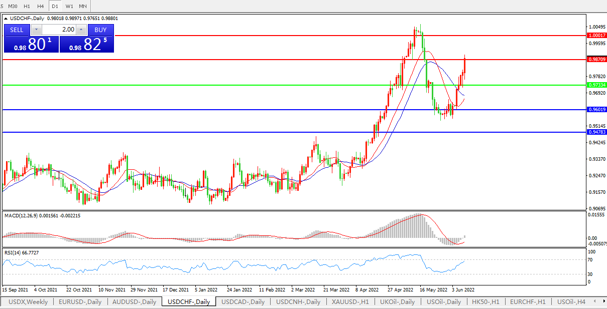 通胀高企避险涌现,美元兑瑞郎快速上攻