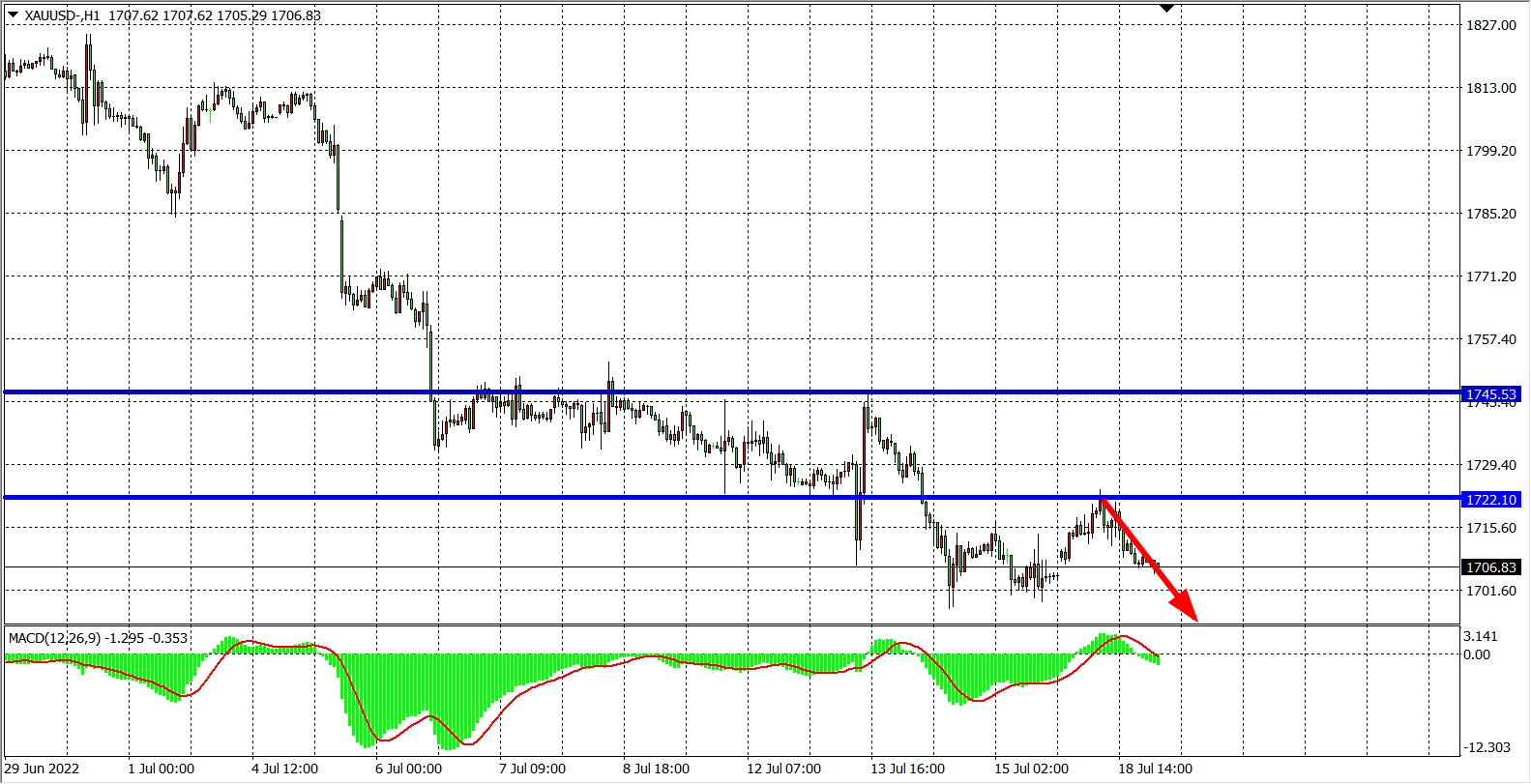 交易策略:在1722.00之下看跌,目标1690.00 1670.00