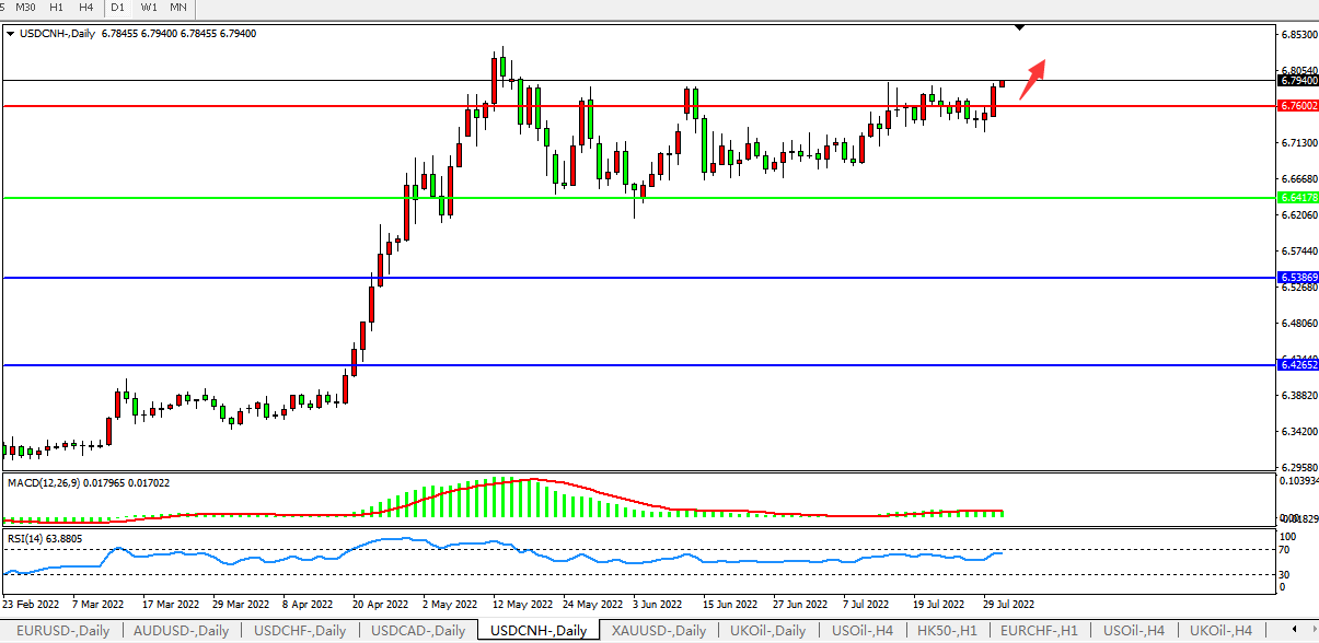交易策略:在6.6416之上,看涨,目标价位为6.7600、6.8870