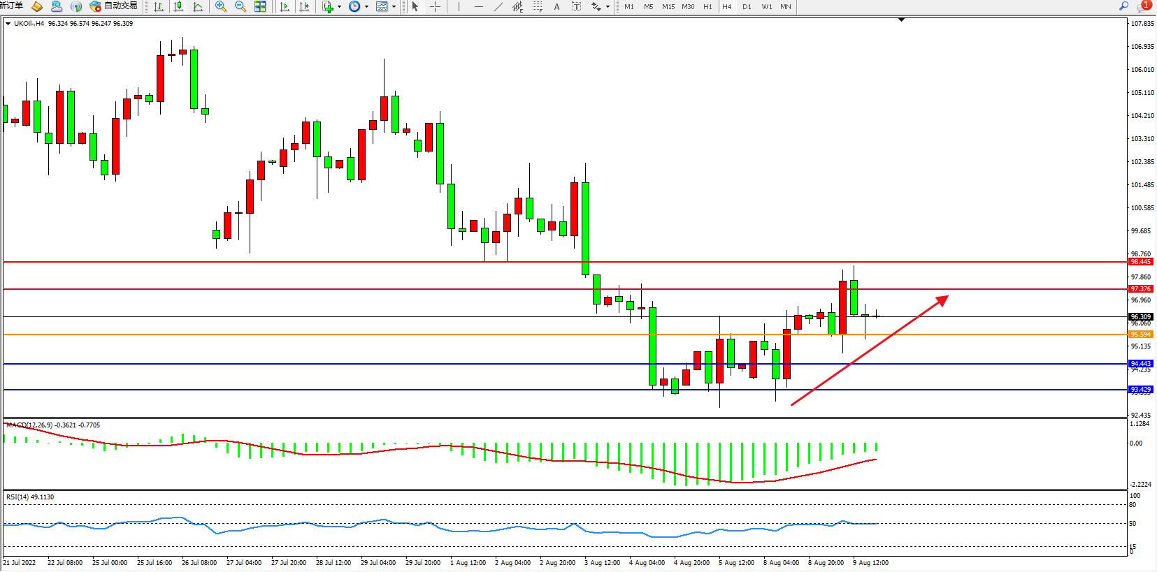 布油UKOil——4小时K线图显示: