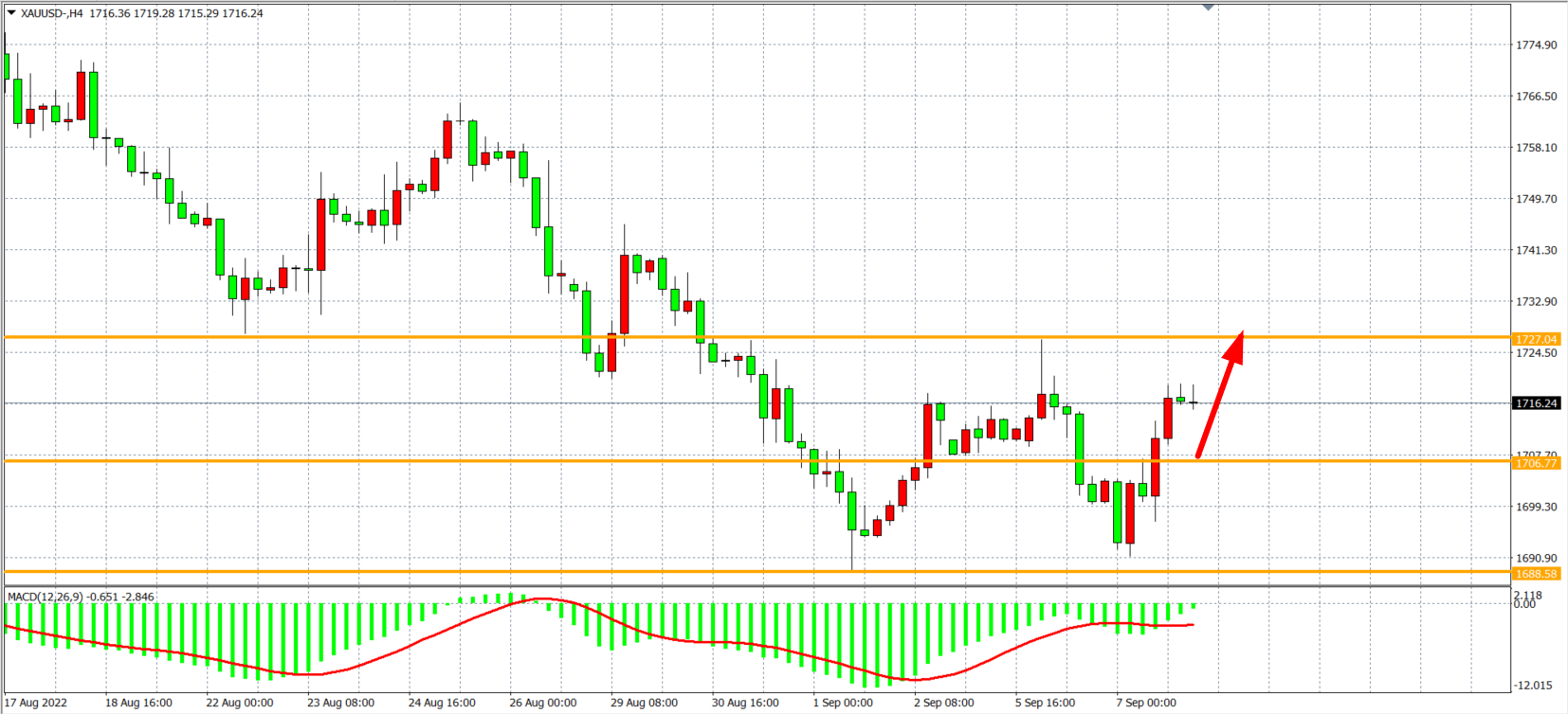 交易策略:在1706.00之上看涨,目标1727.00 1740.00