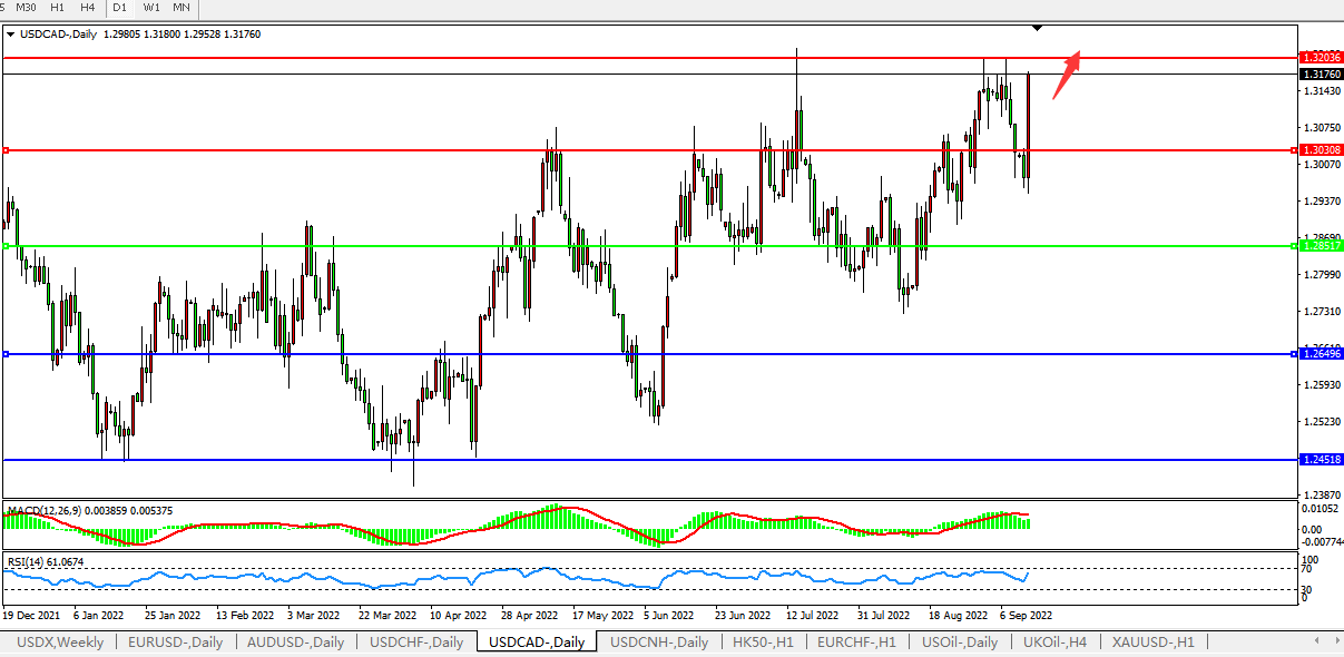 美元兑加元USDCAD  日线图: