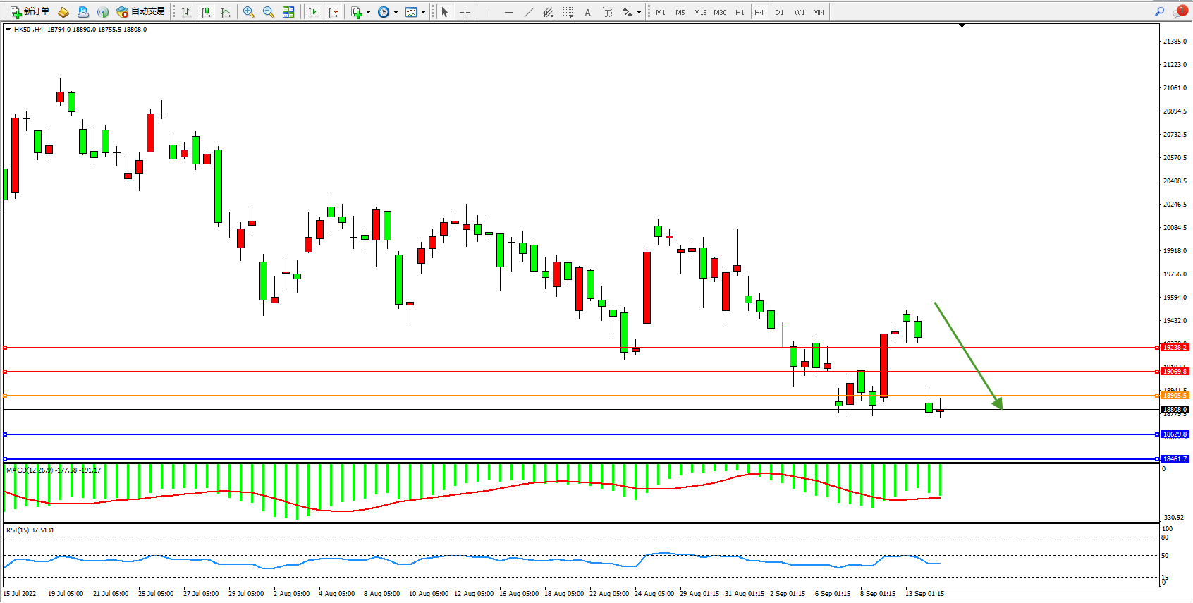 恒指HK50 4小时图