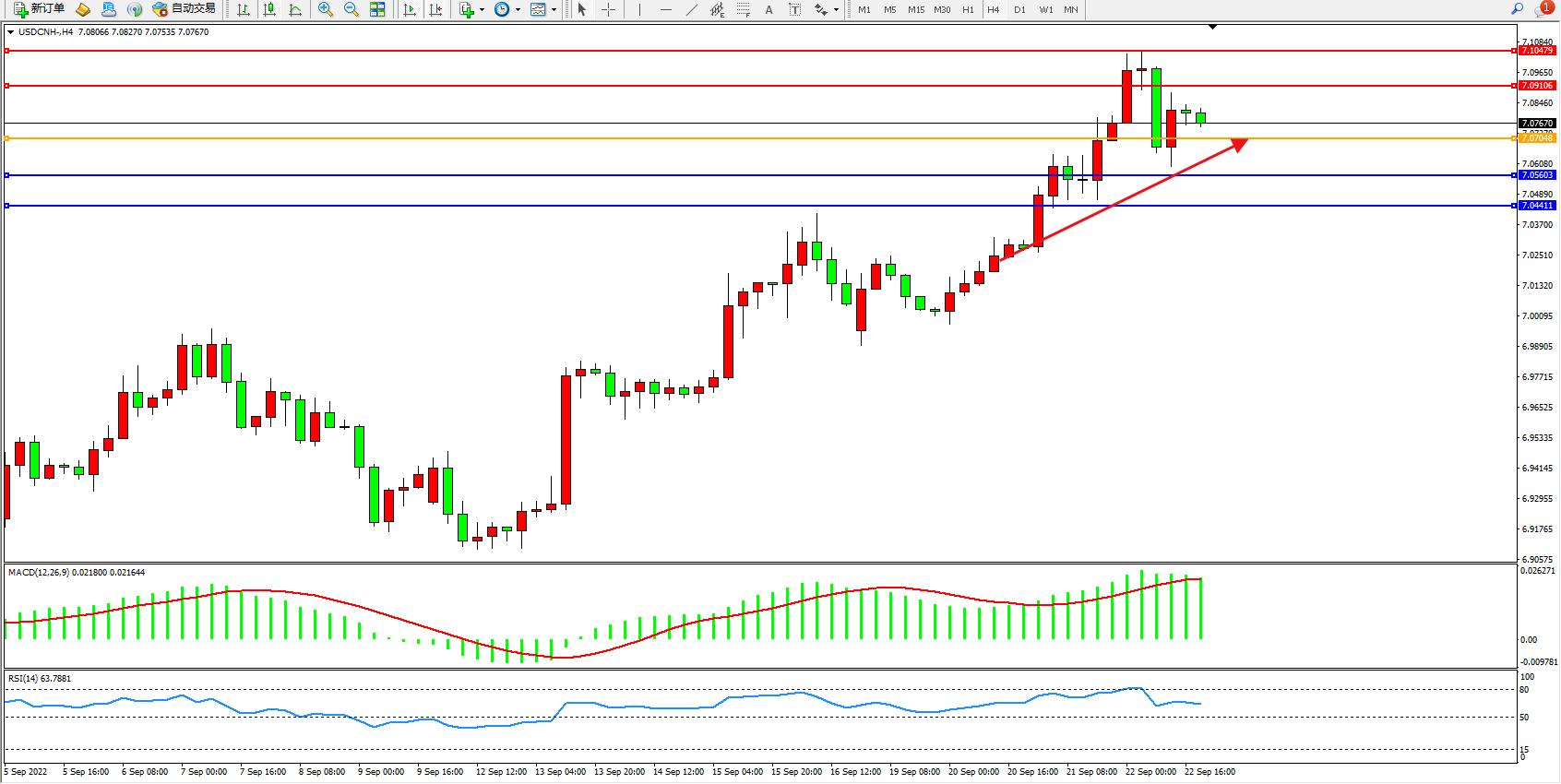 人民币:多头拉升高位整理 USDCNH  HKDCNH