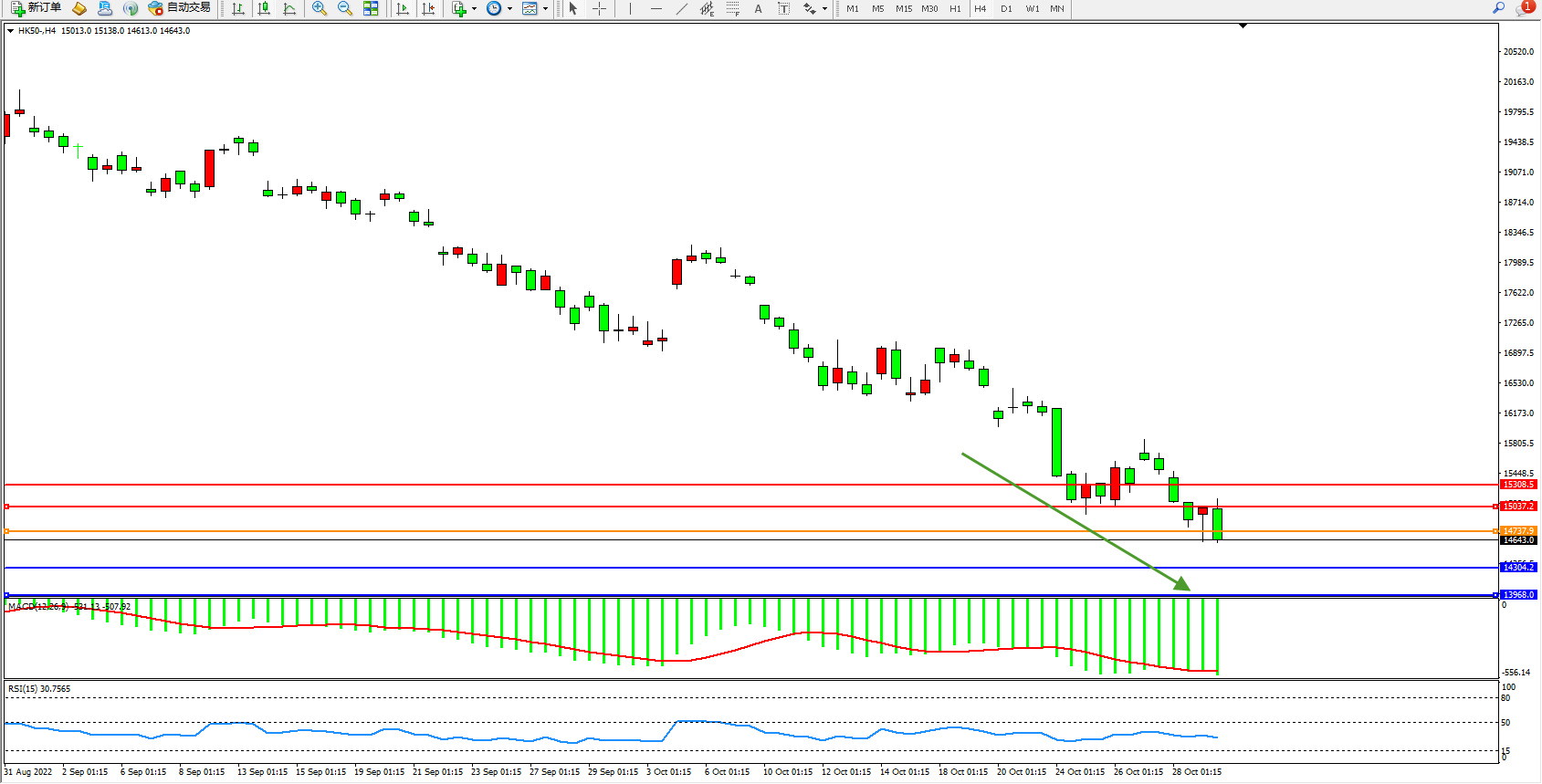 恒指HK50 4小时图