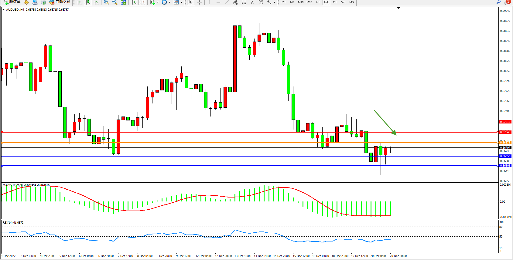 澳元美元AUDUSD——4小时K线图显示: