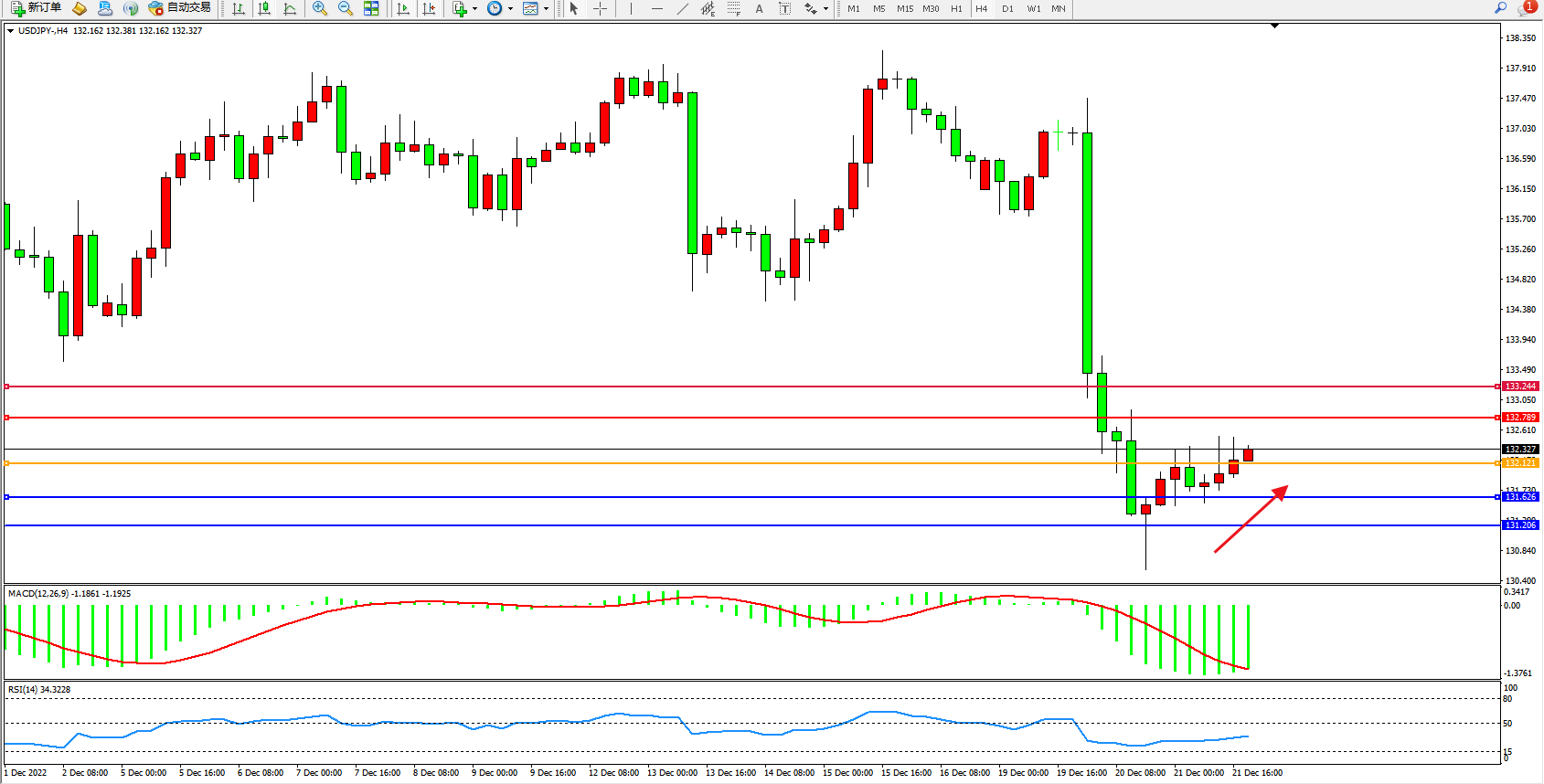 4小时图看:低位多头动力窄幅整理上移,市场多头动力不断涌现,MACD指标处于空头区域低位整理,RSI指标处于空头区域缓慢上行;