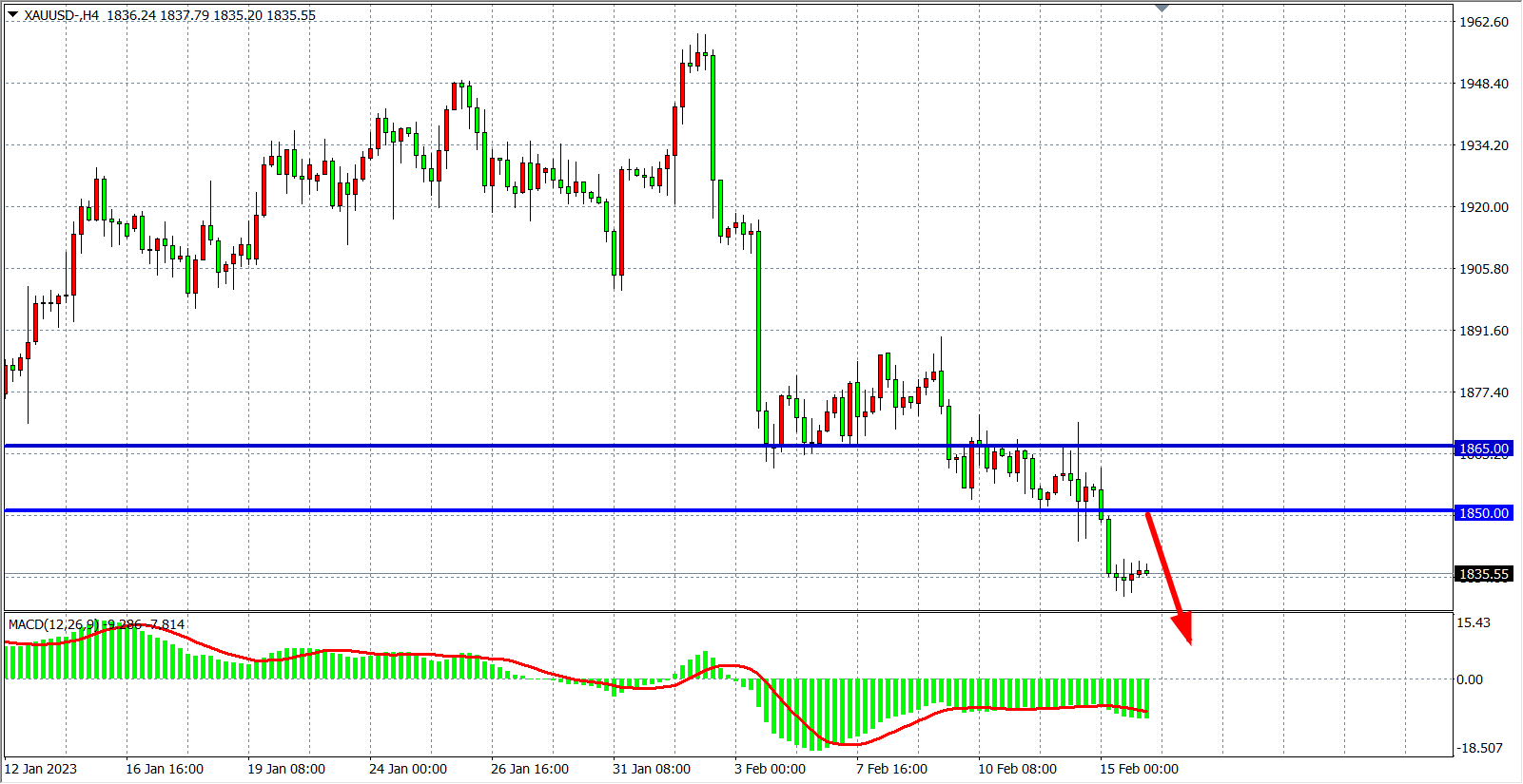 交易策略:在1850.00 之下看跌,目标1830.00 1820.00