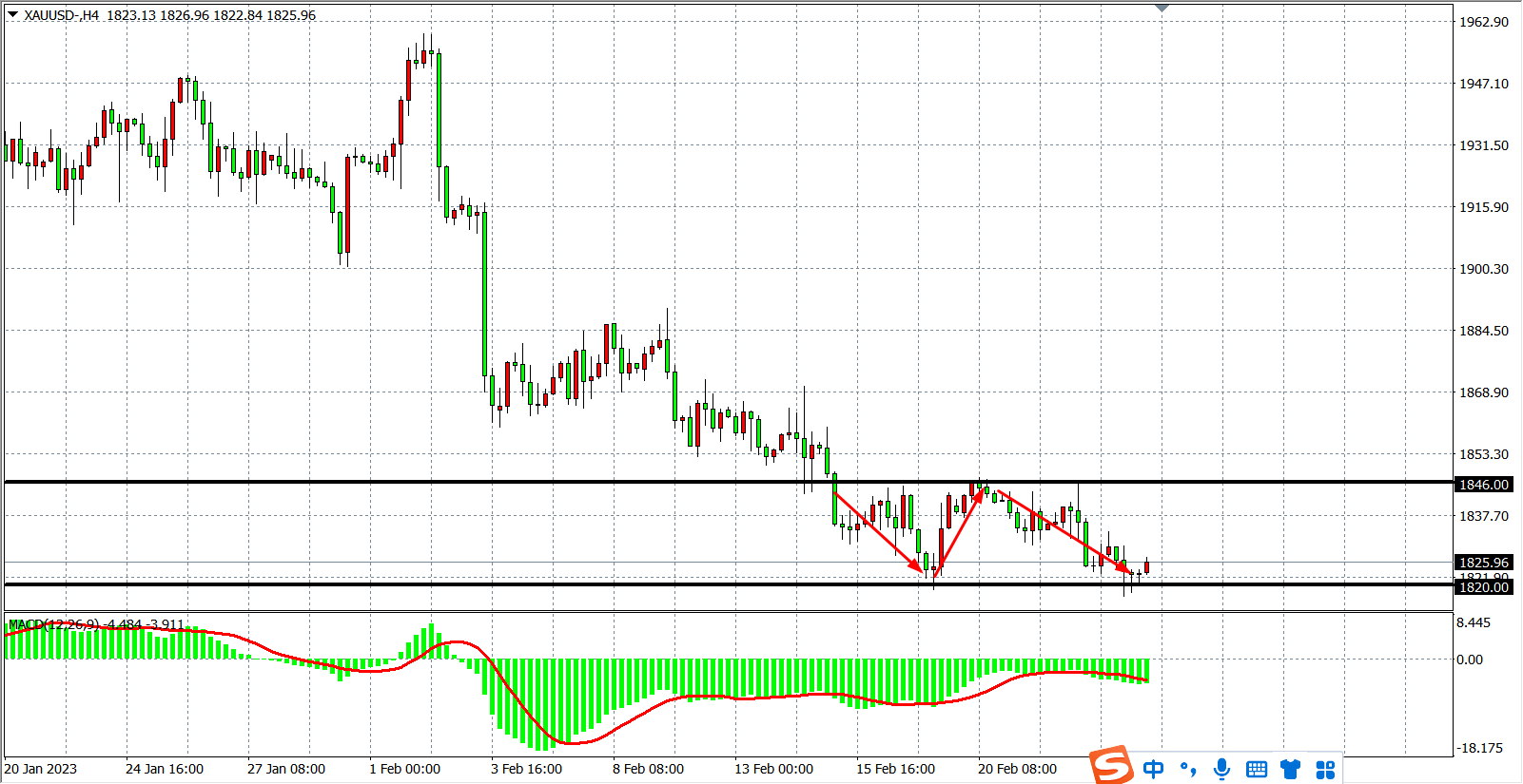 交易策略:在1820.00 之下看涨,目标1830.00         1847.00