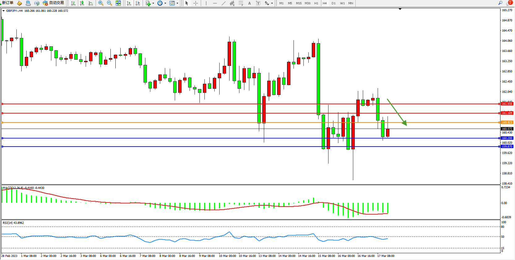 交易策略:160.823下方看跌,目标160.200  159.870