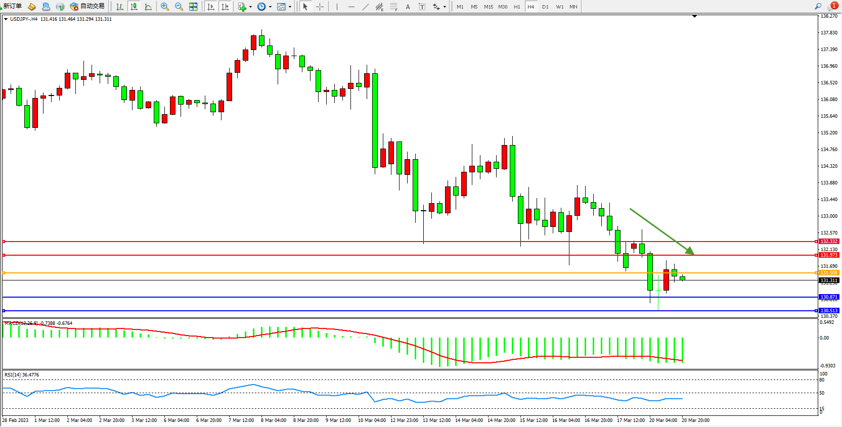 交易策略:131.508下方看跌,目标130.871 130.513