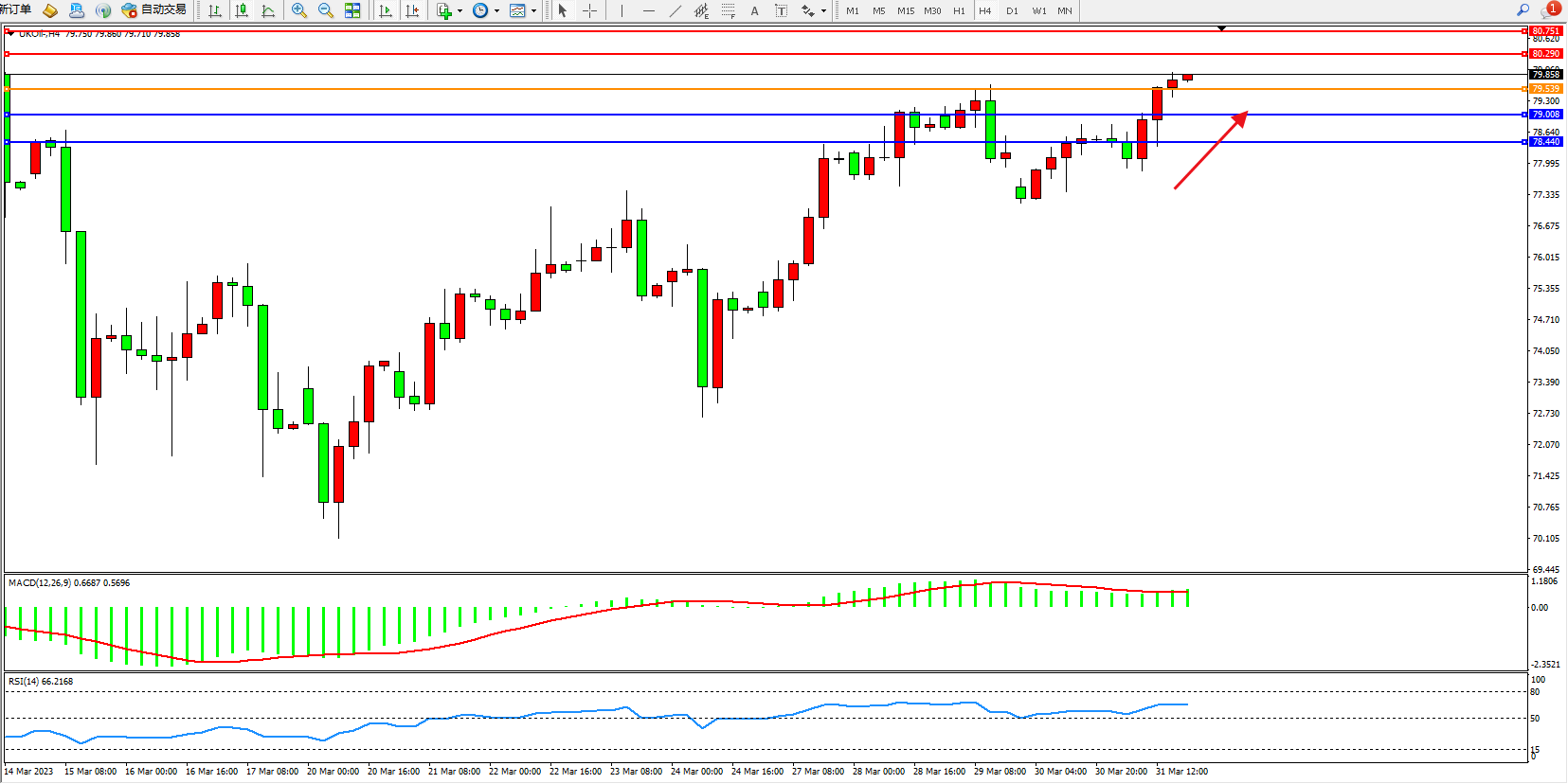 布油UKOil——4小时K线图显示: