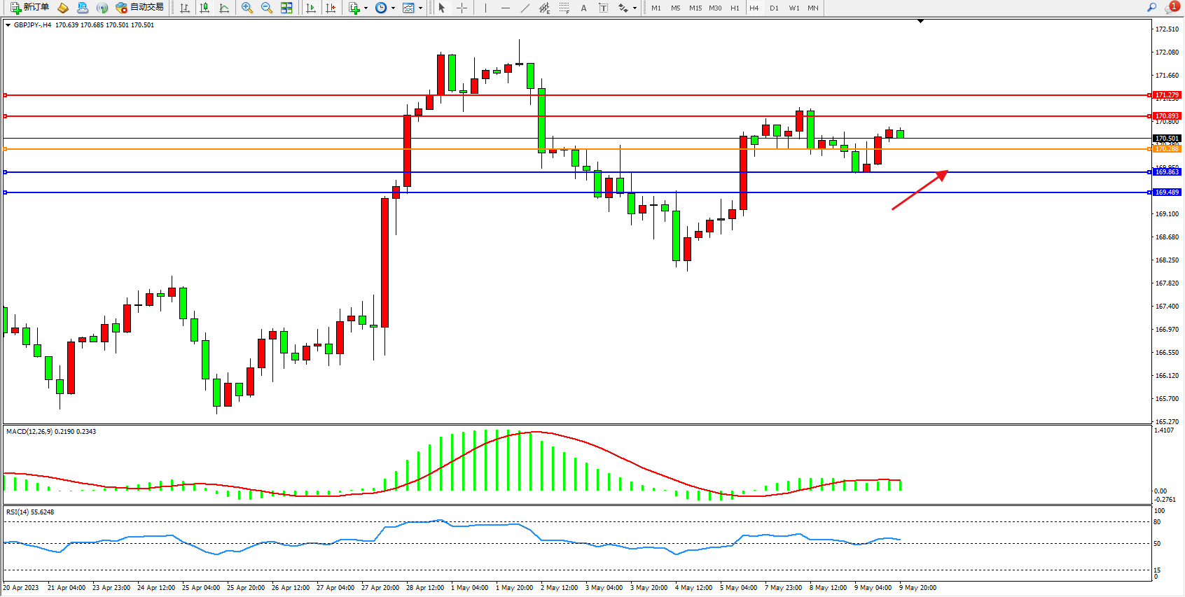 交易策略:170.288上方看涨,目标170.893 171.279