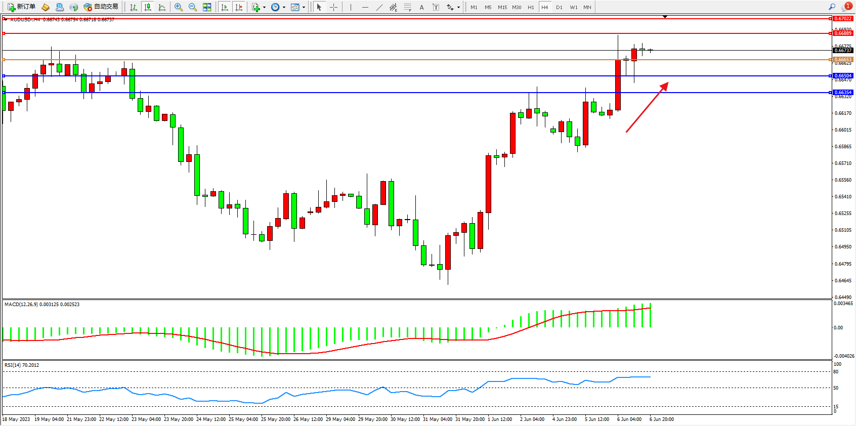 阻力位:0.66889 0.67022