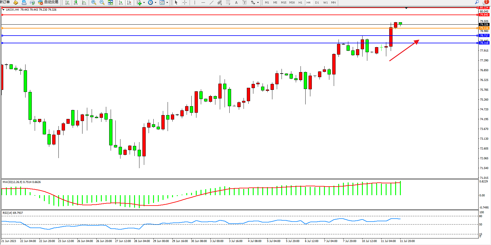 布油UKOil——4小时K线图显示:
