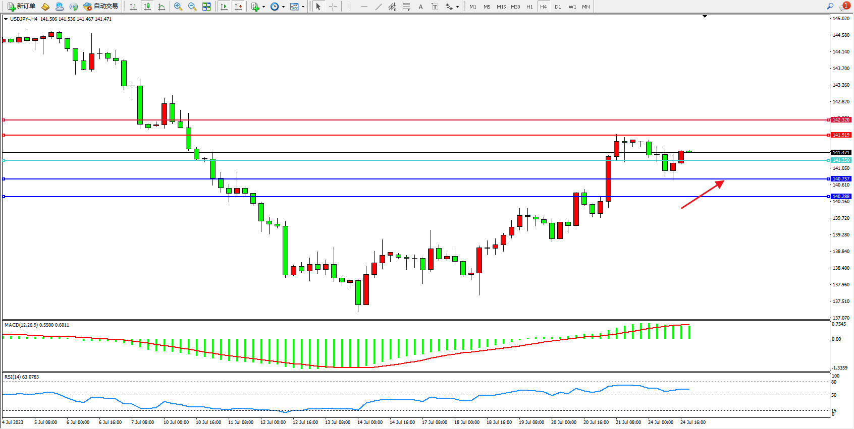 交易策略:141.250上方看涨,目标141.919  142.320