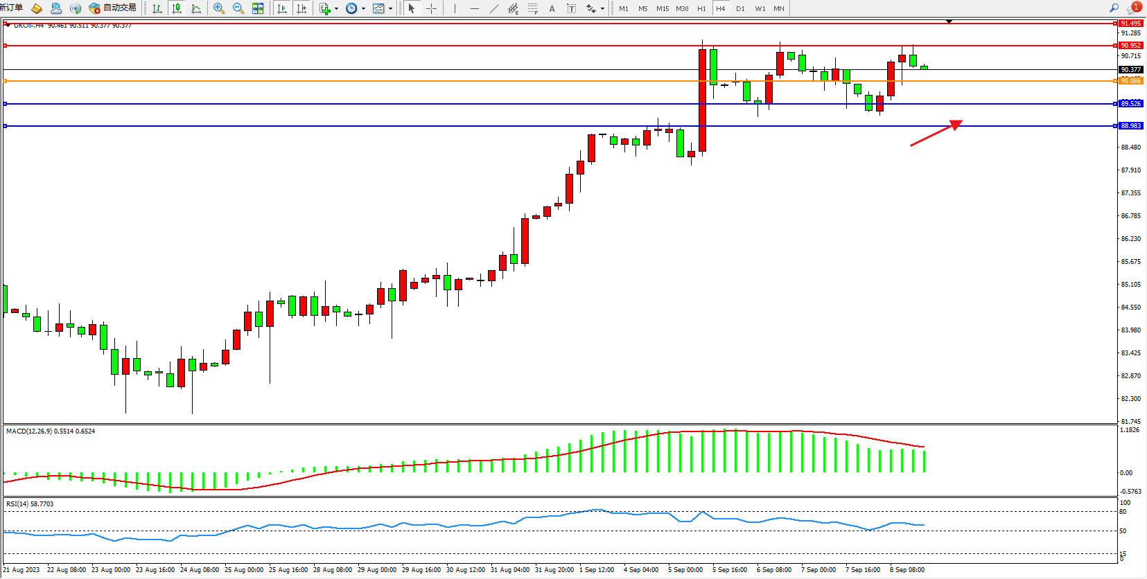 布油UKOil——4小时K线图显示: