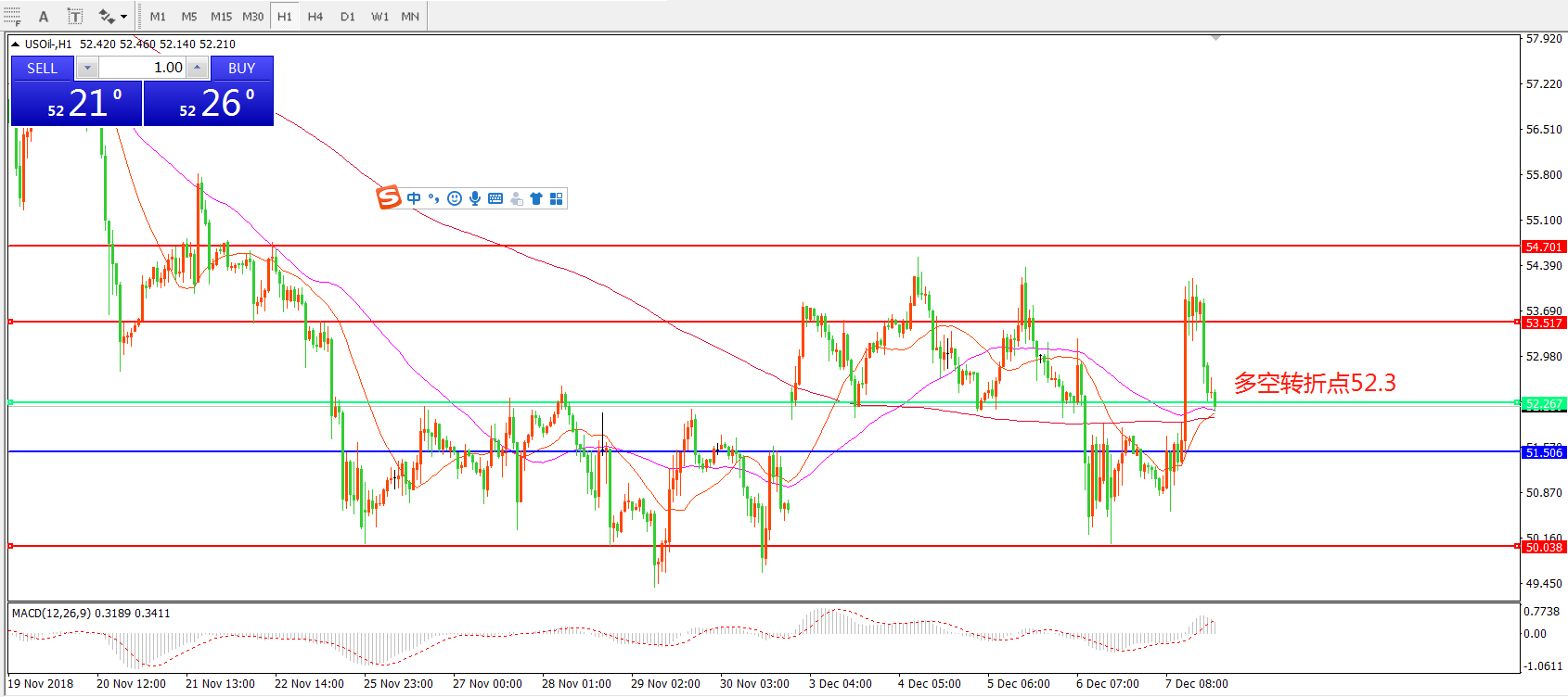 交易策略:在52.3之上看涨,目标53.60 54.70